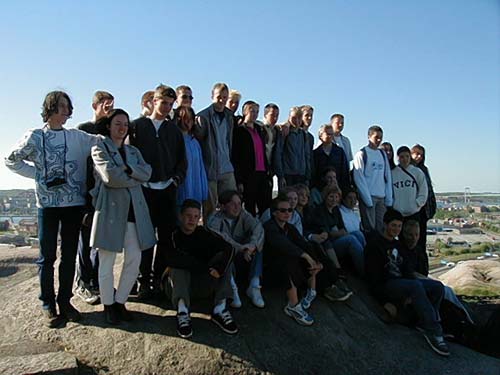 Most of the group (both Swedes and French) on top of a mountain.