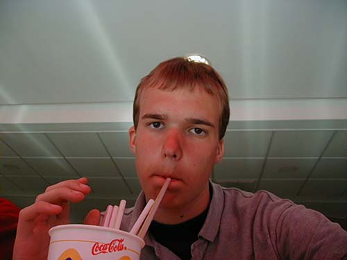 David drinking CocaCola. "The straws for free"